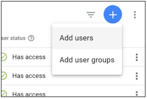 Click the blue plus sign button in the top right corner of your screen, and select “Add users.” This will bring you to the GTM invitation.
