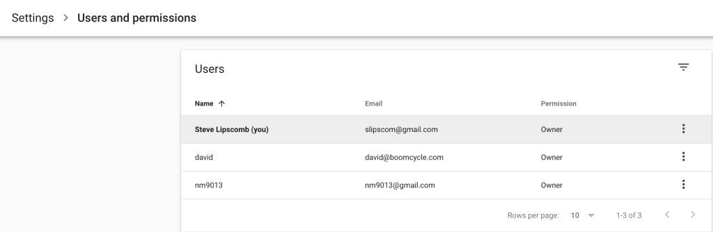 Step 5: In the Users and permissions settings click the three dots next to an owner’s email address: